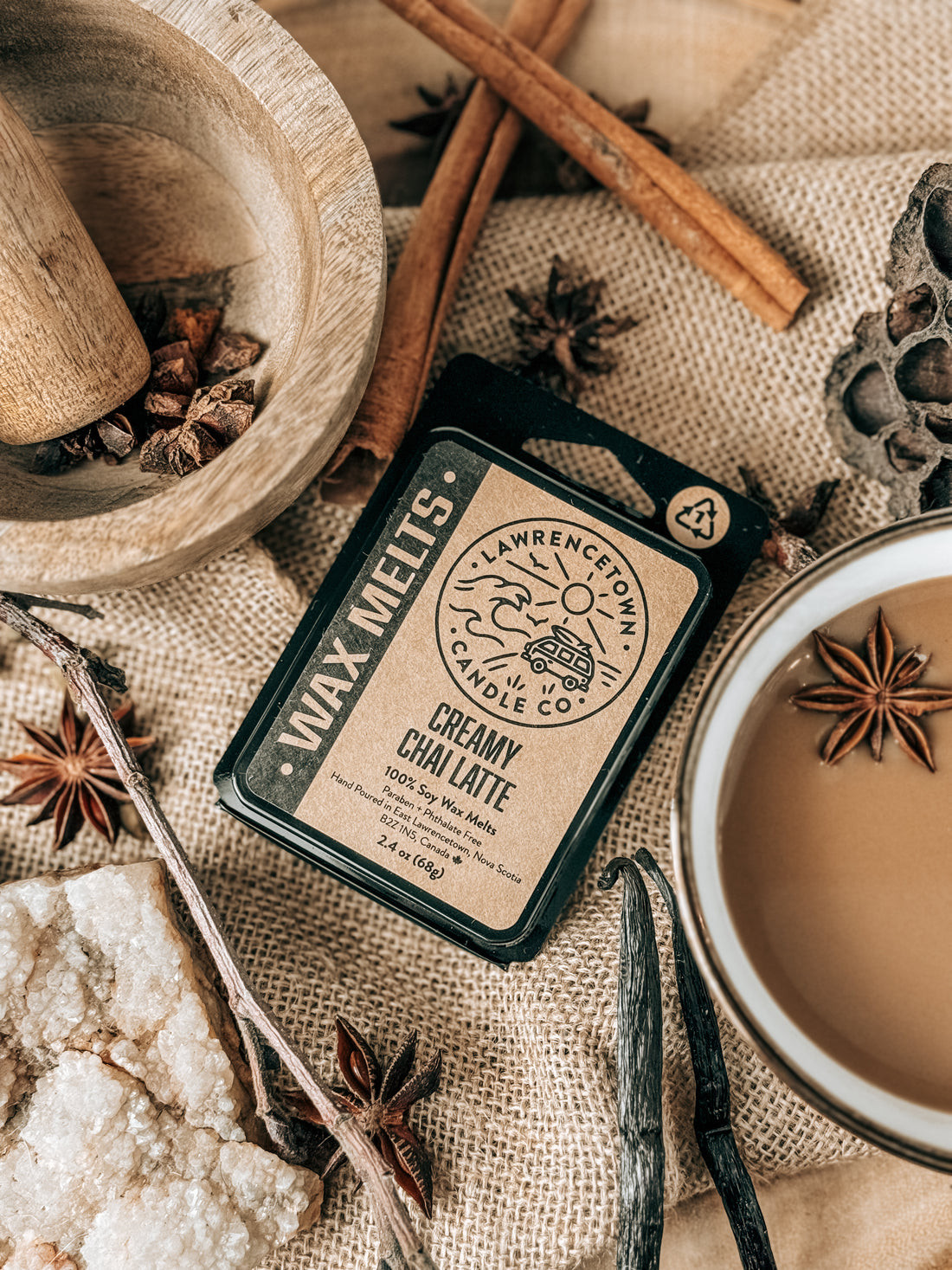 Scent Notes : Creamy Chai Latte Soy Candle. Embrace cozy moments with the rich scent of chai spices, creamy sweetness, and a hint of warmth, perfect for any season.